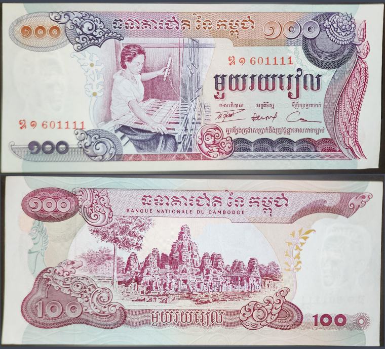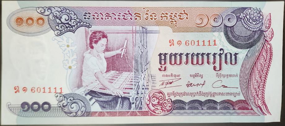 Novčanica: - CAMBODIA - KHMER / KMERSKA REPUBLIKA (1974) 100 Riels UNC