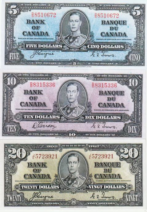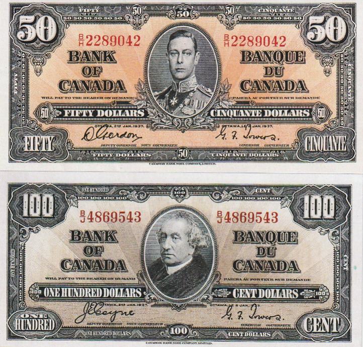 CANADA 1,2,5 ,10,20,50,100 DOLLAR 1937 REPLIKE LOT 7 KOM