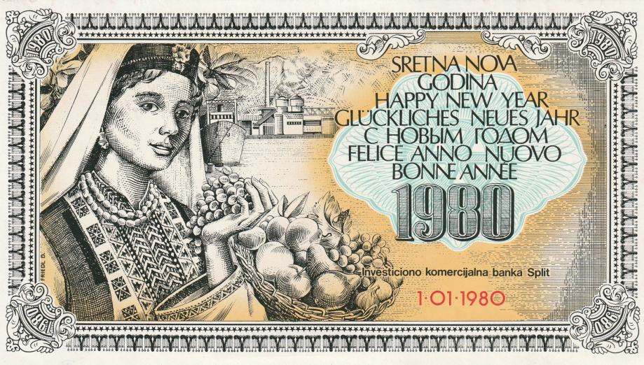 ČESTITKA INVESTICIONO KOMERCIONALNE BANKE SPLIT 01.01.1980