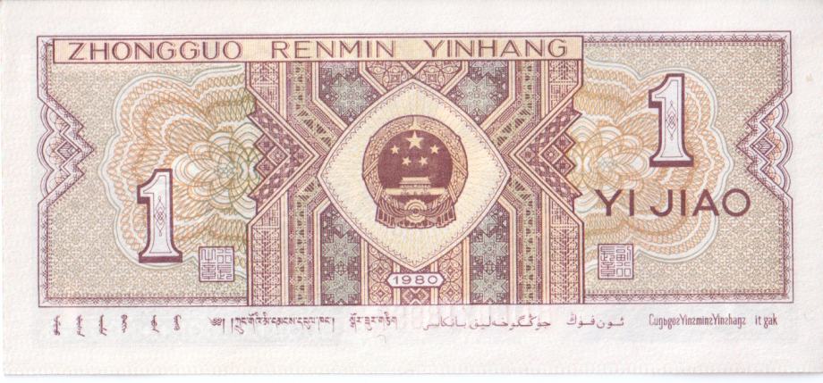 China 1 Jiao Zhongguo Renmin Yinhang 1980 Banknote UNC
