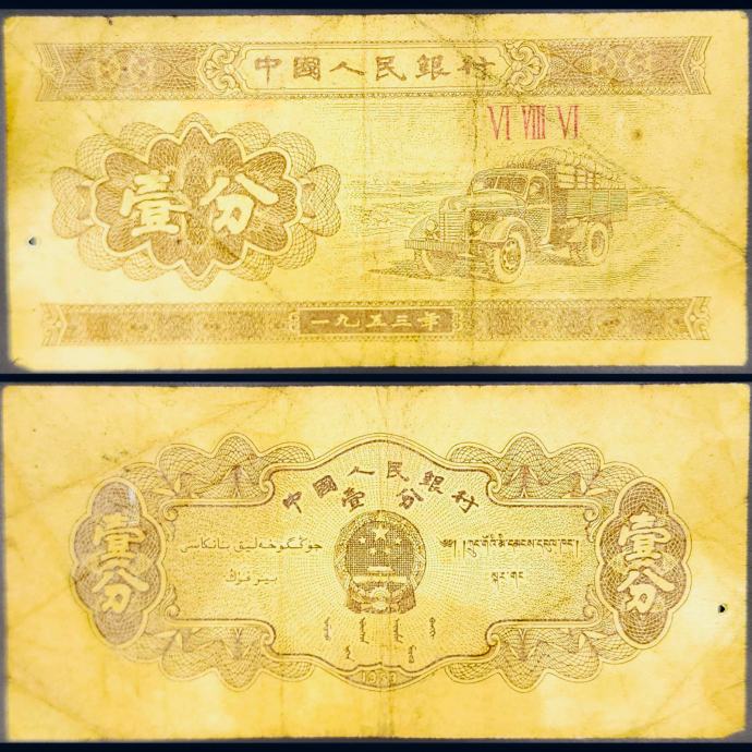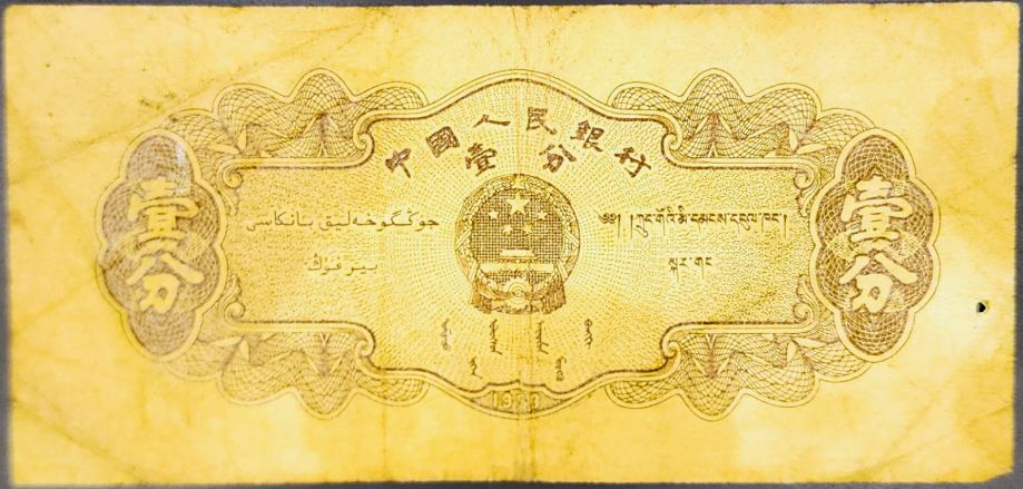 Novčanica: - CHINA / KINA (1953) 1 Fen