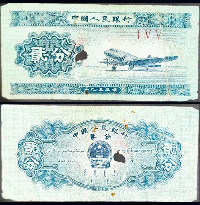 Novčanica: - CHINA / KINA (1953) 2 Fen