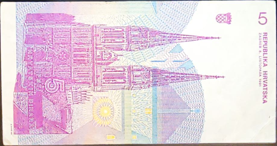 CROATIA / HRVATSKA (1991) HRDa 5 Dinara - D6745794