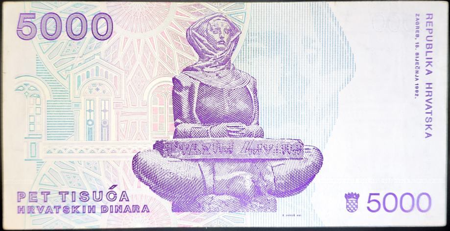 CROATIA / HRVATSKA (1992) HRDa 5000 Dinara