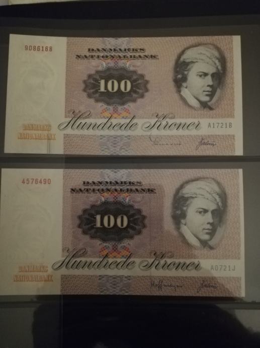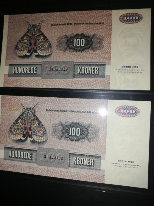 Danska 100 DKK 1972. prefix A0, A1 (par) "R" u UNCu