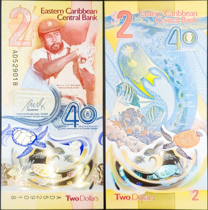 Novčanica: - EASTERN CARIBBEAN / ISTOČNI KARIBI (2023) 2 Dollars - Jubilarna UNC