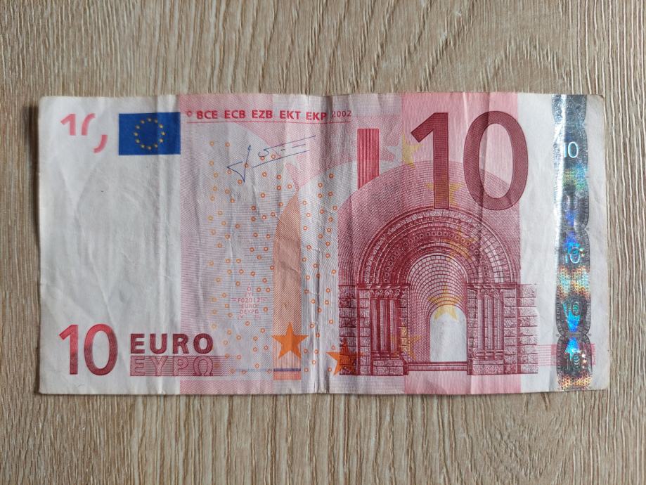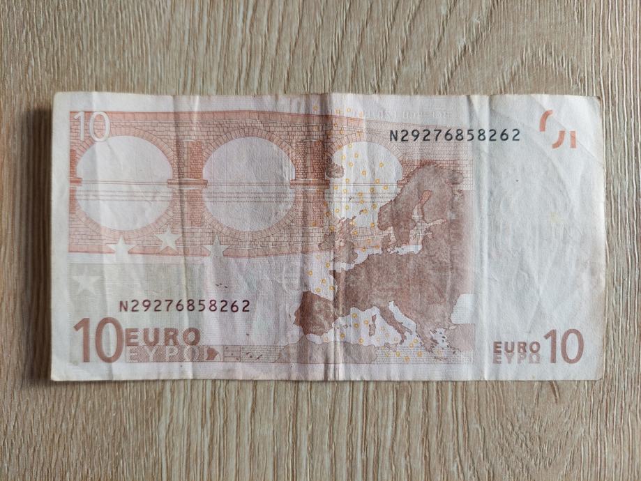 Radi se o novčanici 10 eura iz 2002. g. sa potpisom predsjednika ESB-a Jeana-Cludea Tricheta (P-9n).