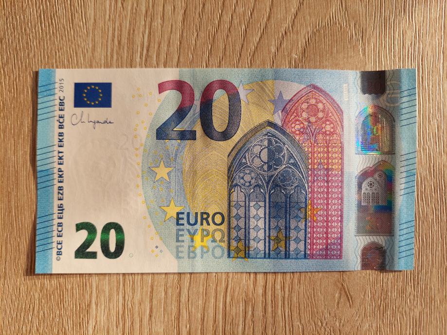 Radi se o novčanici 20 eura iz 2015. g. sa potpisom predsjednice ESB-a Christine Lagarde (P-W28e).