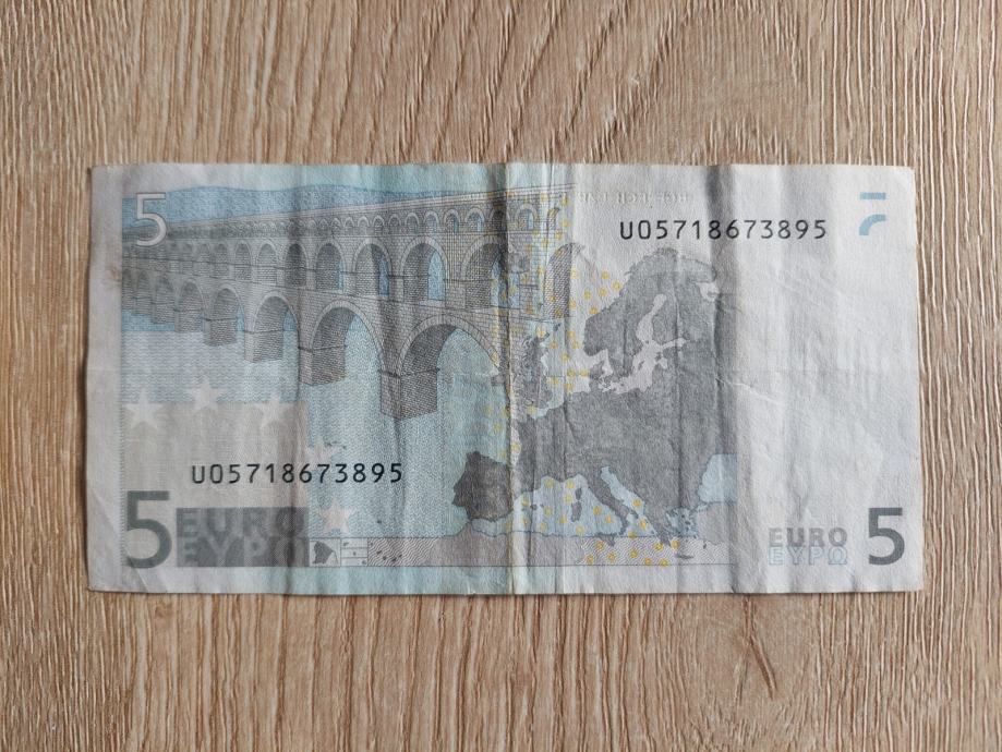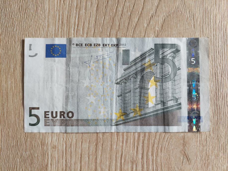 Radi se o novčanici 5 eura iz 2002. g. sa potpisom predsjednika ESB-a Jeana-Cludea Tricheta (P-8u).
