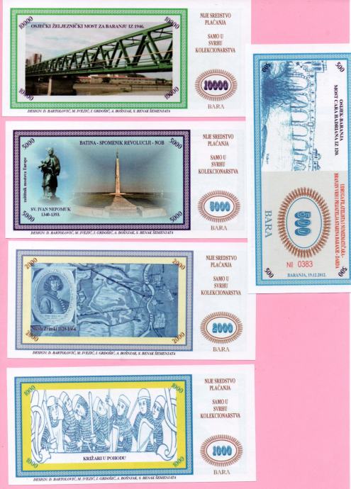 - lot bara, 8 kom, 2011. - Udruga numizmatičara filatelista i prijatelja starina Baranje - 100 kn - PRODANO