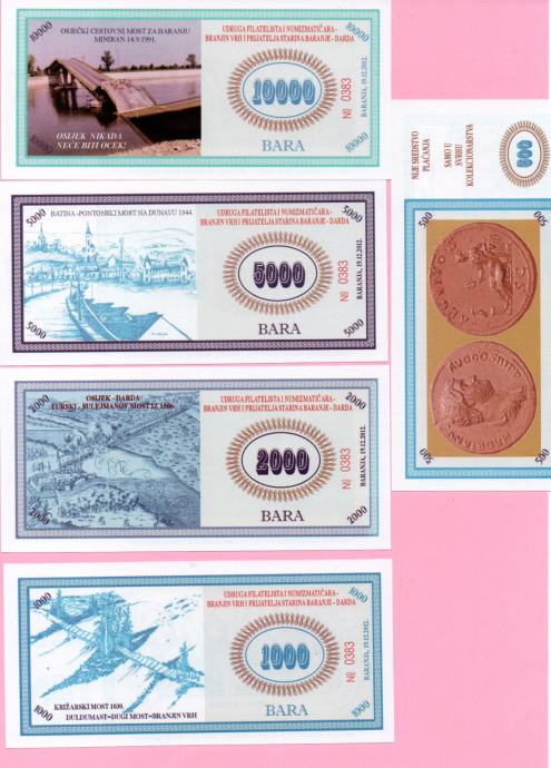 - lot bara, 5 kom, 2012. - Udruga filatelista i numizmatičara - Branjin Vrh i prijatelja starina Baranje - Darda - 100 kn - PRODANO