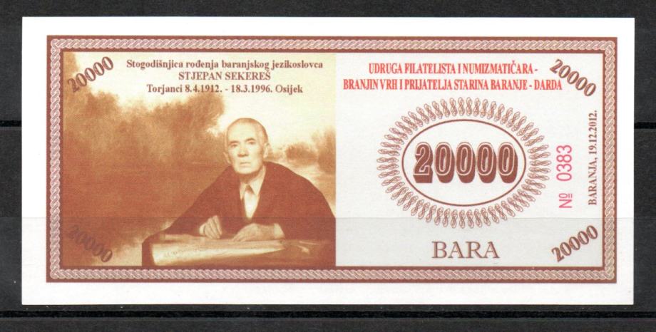 - Stogodišnjica rođenja baranjskog jezikoslovca Stjepan Sekereš - Udruga filatelista i numizmatičara - Branjin Vrh i prijatelja starina Baranje - Darda - 30 kn