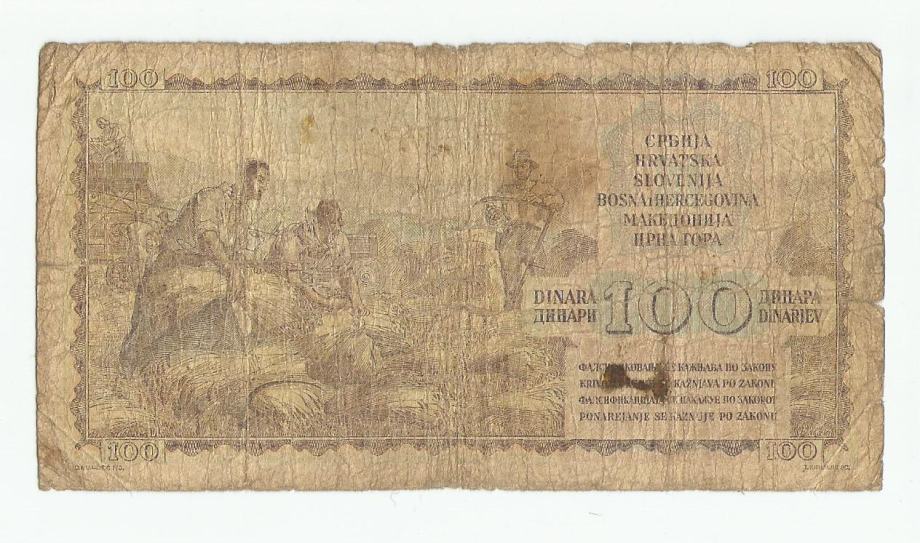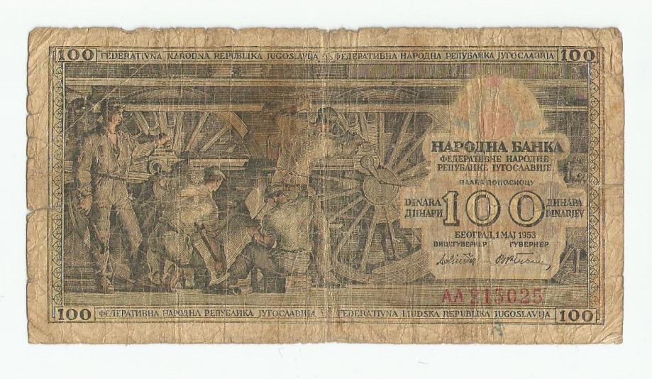 FNRJ 100 dinara 1953.