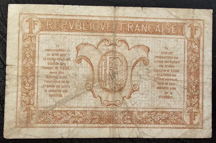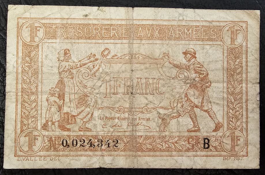 FRANCE- 1 FRANC 1917., TRÉSORERIE AUX ARMÉES, TYPE 1, RIJETKO!
