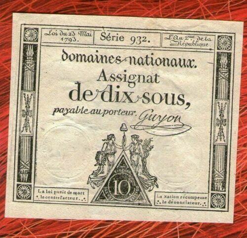 France ASSIGNAT FRENCH REVOLUTION 10 sols livres 1793 ( No108) great q