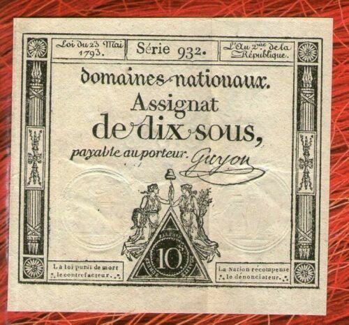 France ASSIGNAT FRENCH REVOLUTION 10 sols livres 1793 ( No111) great q