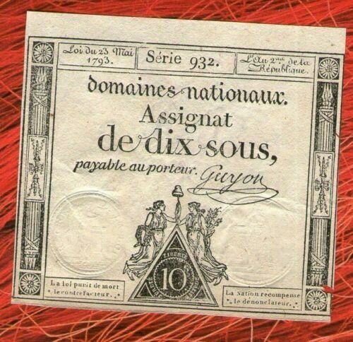 France ASSIGNAT FRENCH REVOLUTION 10 sols livres 1793 ( No112)
