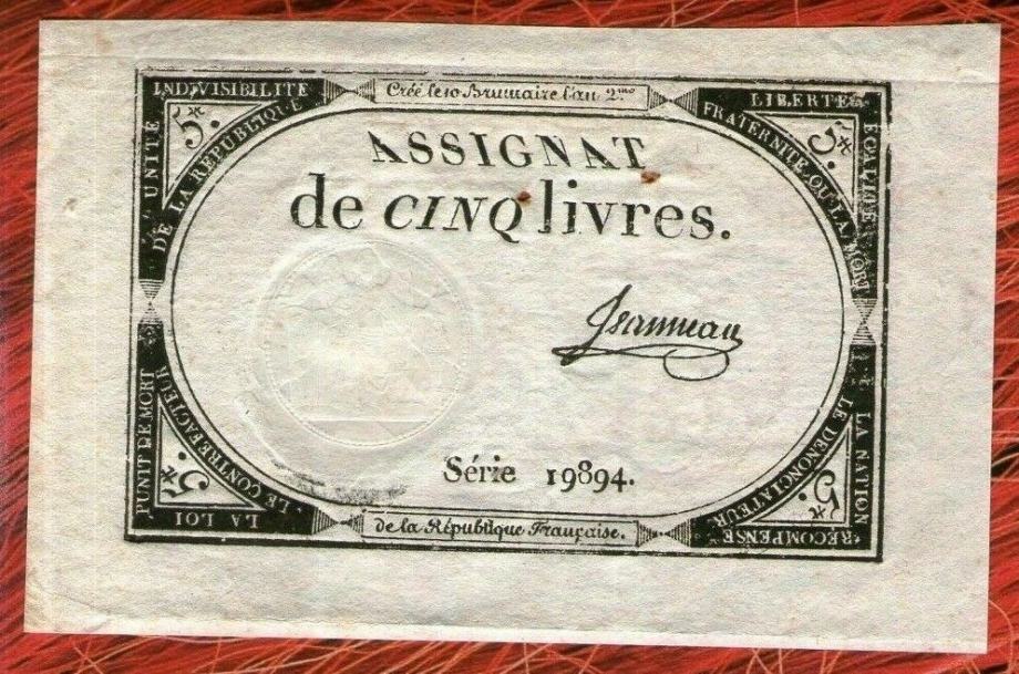 France ASSIGNAT FRENCH REVOLUTION 5 sols livres 1793 ( No099)