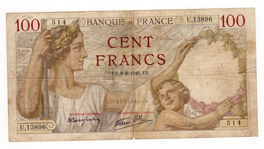 NOVČANICA FRANCUSKE 1OO FRANCS 1940 GODINA