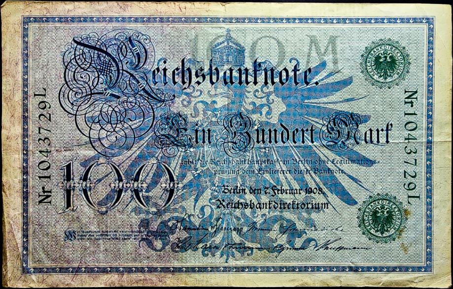 Novčanica: - GERMANY / NJEMAČKA (1908) 100 Mark - Zeleni zig