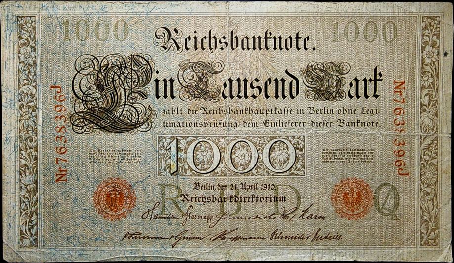Novčanica: - GERMANY / NJEMAČKA (1910) 1000 Mark