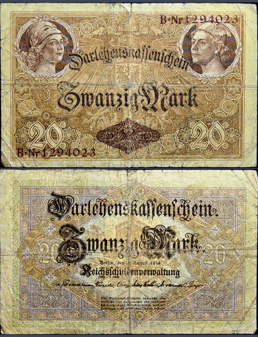 Novčanica: - GERMANY / NJEMAČKA (1914) 20 Mark