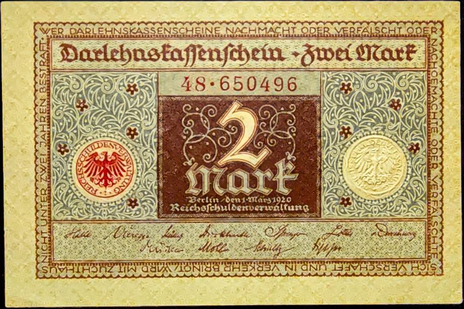 GERMANY / NJEMAČKA (1920) 2 Mark UNC