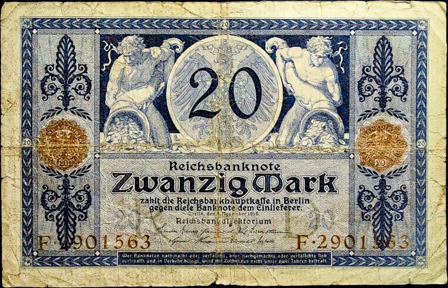 Novčanica: - GERMANY / NJEMAČKA REICH (1915) 20 Mark