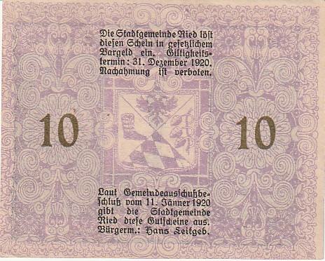 GRADSKI NOVAC AUSTRIA 10 HELERA 1920 G BILRGERM