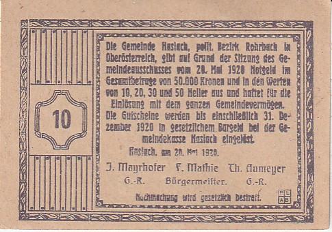 GRADSKI NOVAC AUSTRIA 10 HELERA 1920 G