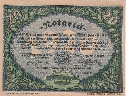 GRADSKI NOVAC AUSTRIA 20 HELERA 1920 G