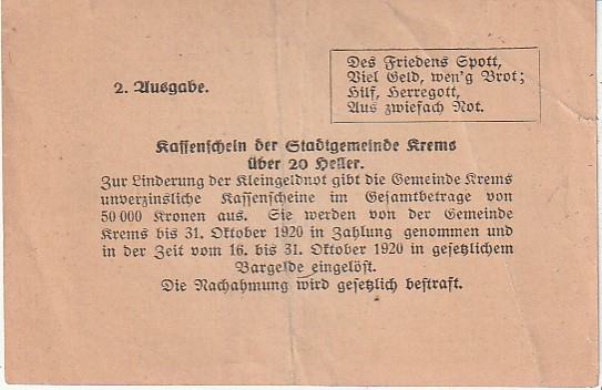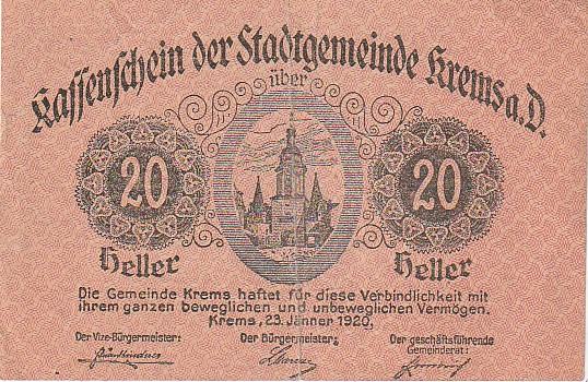 GRADSKI NOVAC AUSTRIA 20 HELERA 1920 G
