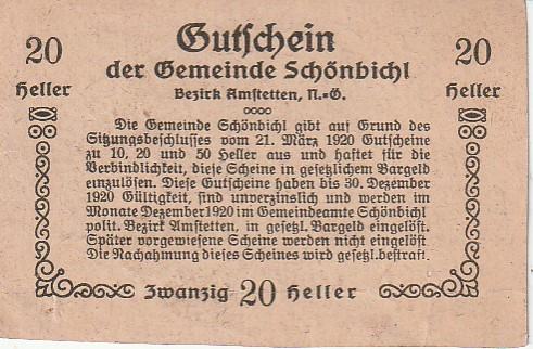 GRADSKI NOVAC AUSTRIA 20 HELERA 1920 G