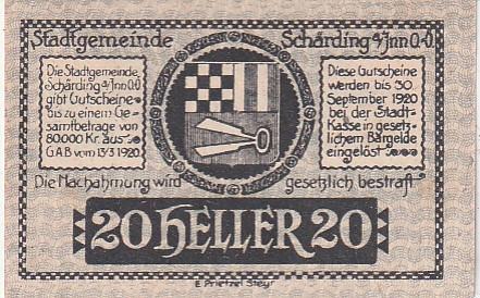 GRADSKI NOVAC AUSTRIA 20 HELERA 1920 G