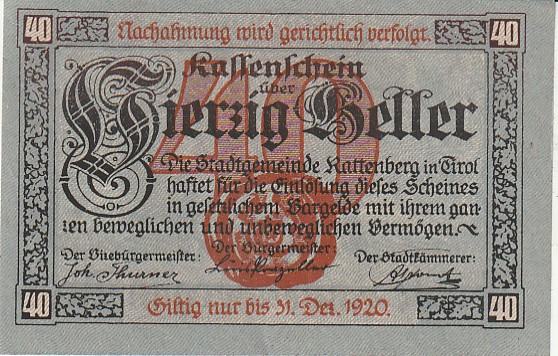 GRADSKI NOVAC AUSTRIA 40 HELERA 1920 G TIROL