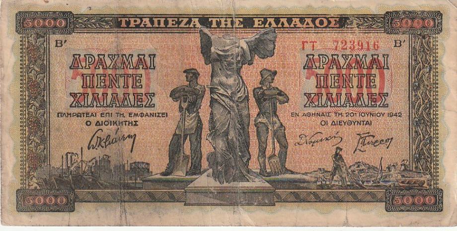 GRČKA 5000 DRAHMI 1943