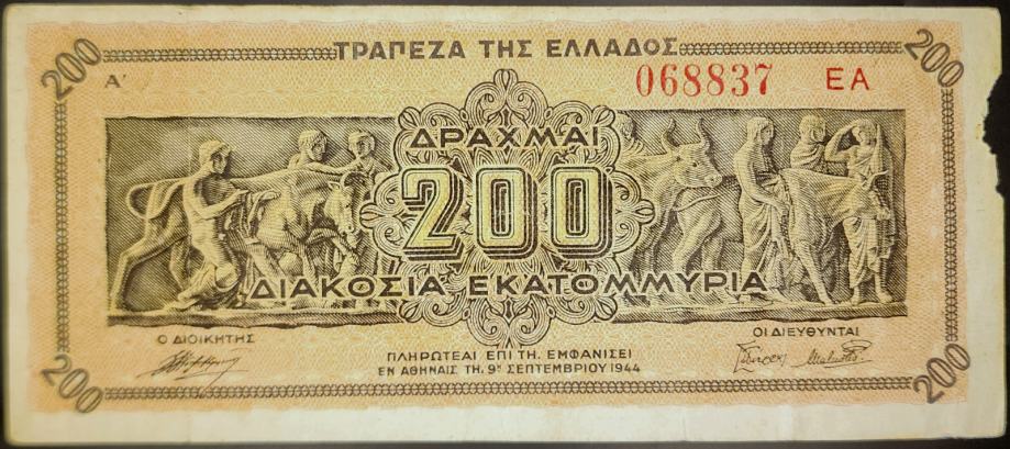 GREECE / GRČKA (1944) 200 000 000 Drachmai Sufix