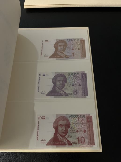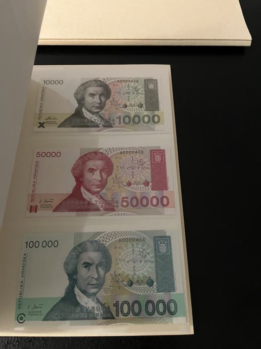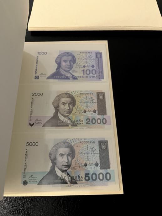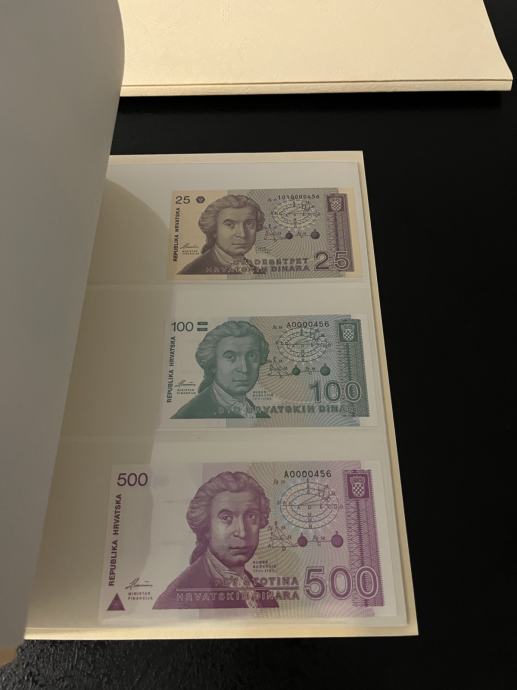 HNB mapa HRDa. Komplet UNC novčanica hrvatski dinar isti serijski broj