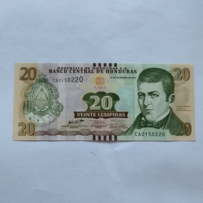 HONDURAS 20 LEMPIRAS 2016 GODINA UNC