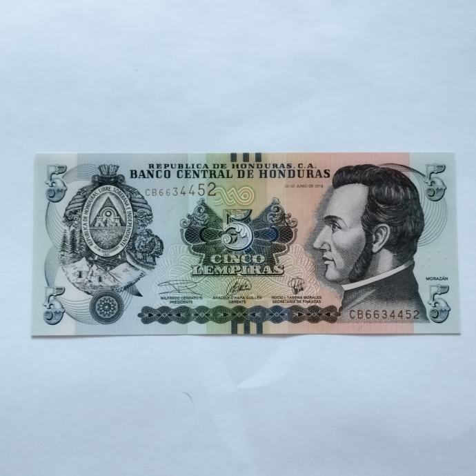 HONDURAS 5 LEMPIRAS 2019 GODINA UNC