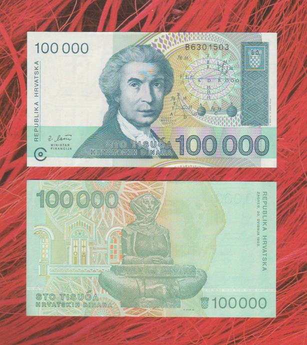 Hrvatska 100 000 Dinara 1993 HRDa UNC