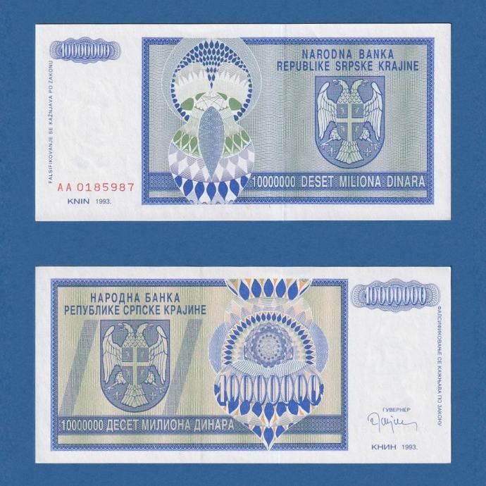 HRVATSKA KNIN 10 MILLION DINARA 1993 0185987 // 6168 UNC