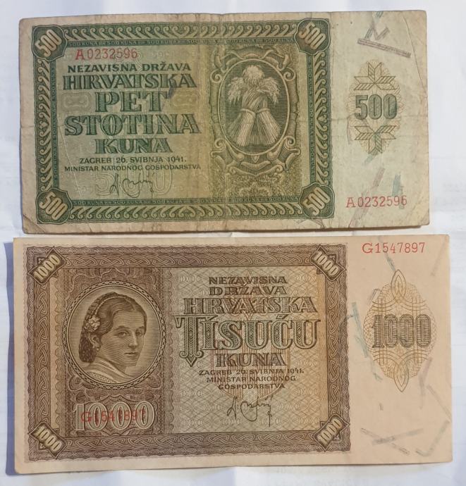HRVATSKA, 500 i 1000 KUNA 1941.