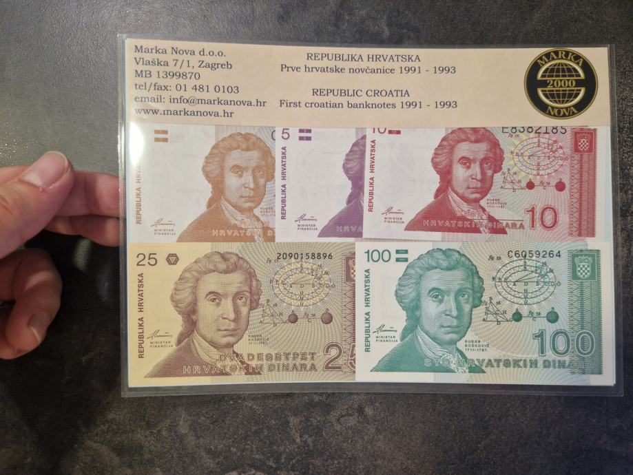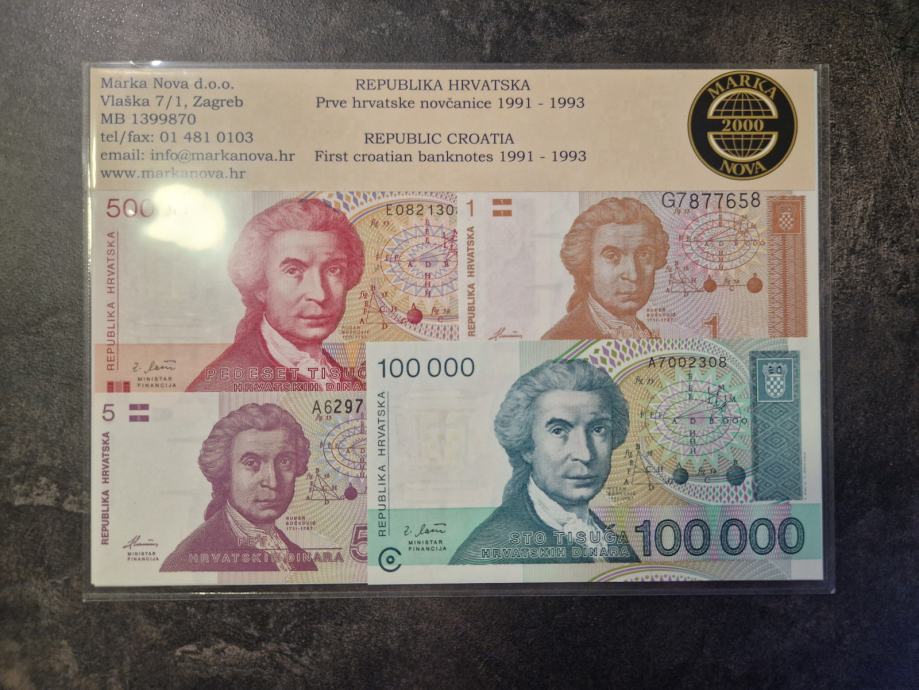 Hrvatski dinar, 1, 5, 10, 25, 100, 50 000, 100 000 UNC Komplet