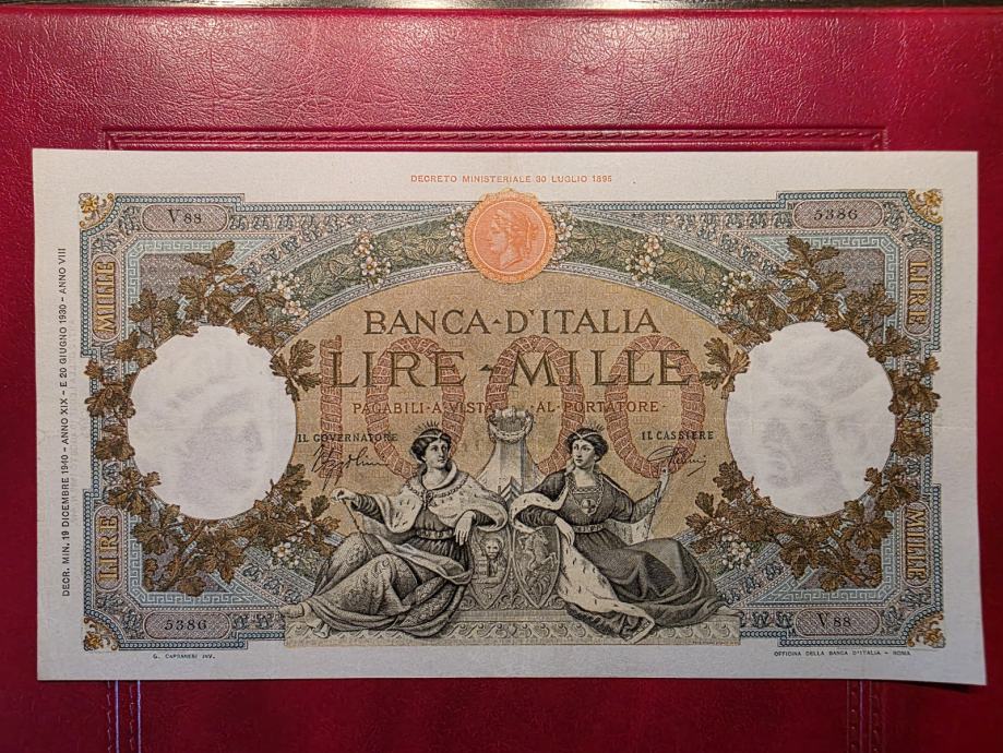 ITALY 1000 LIRE 1940 VF+/XF