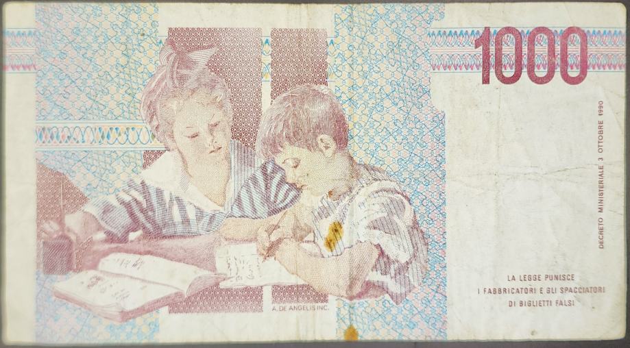 Novčanica: - ITALY / ITALIJA (1993) 1000 Lire