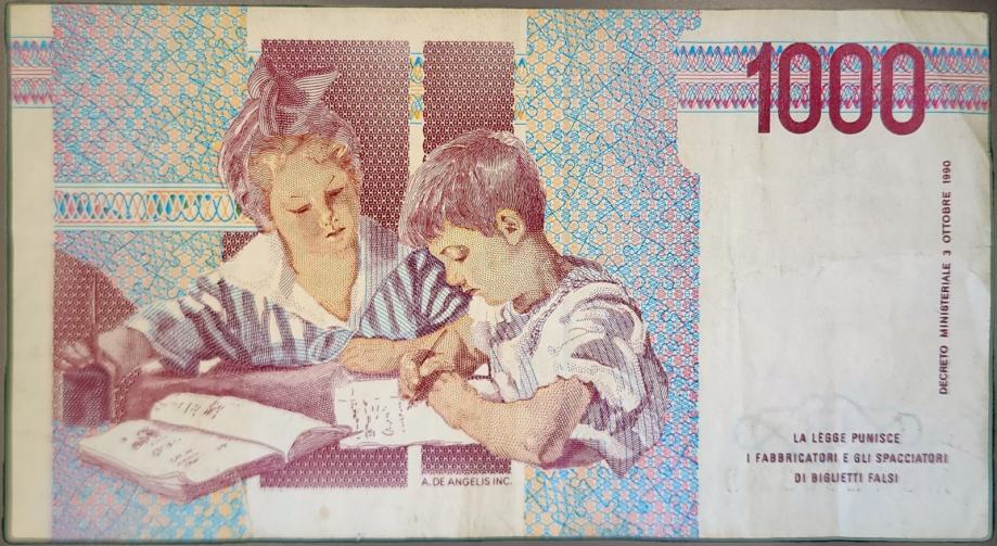 Novčanica: - ITALY / ITALIJA (1998) 1000 Lire