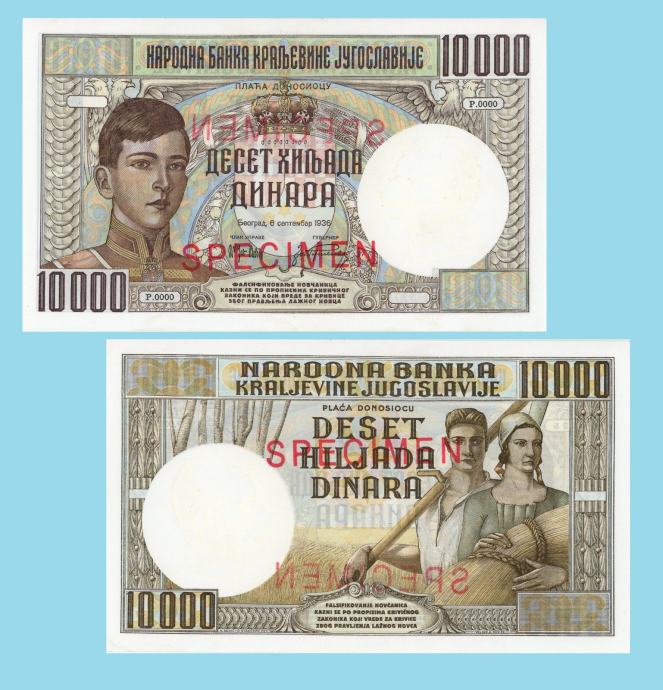 JUGOSLAVIA 10000 DINARA 1936 SPECIMEN