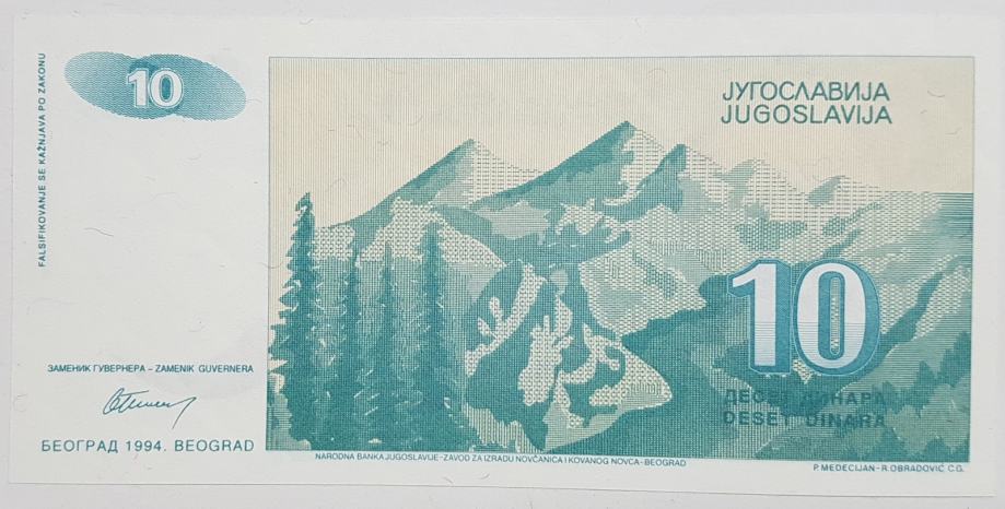 JUGOSLAVIJA, 10 DINARA, 1994, UNC