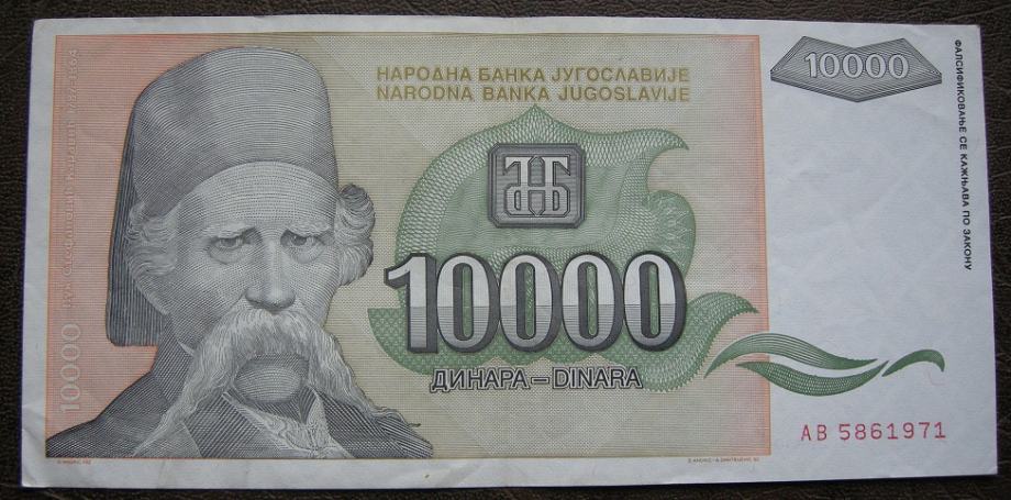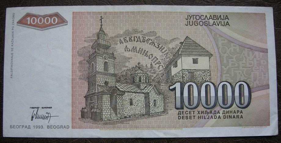 Jugoslavija 10,000 Dinara 1993